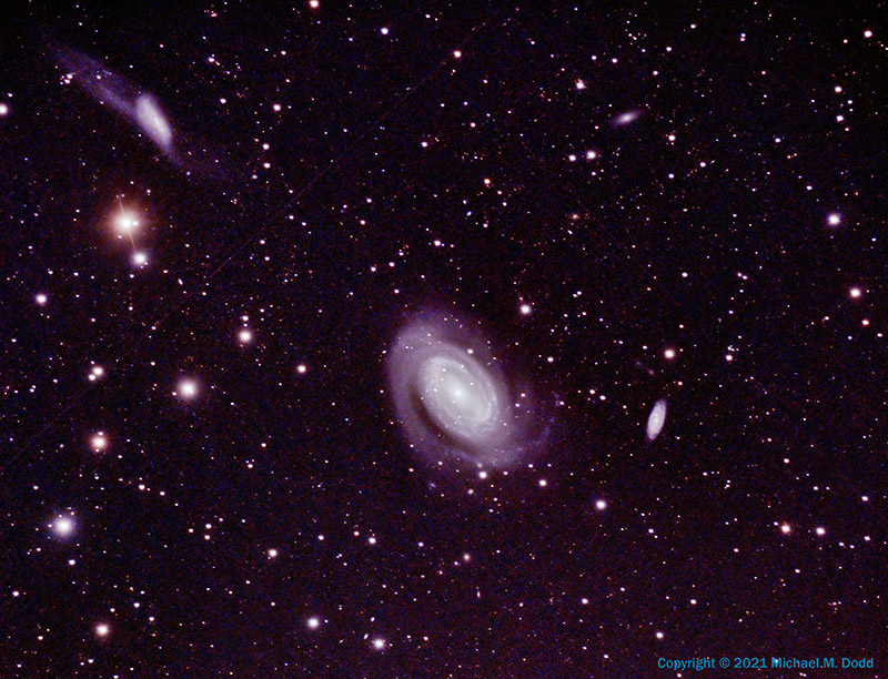 At least three other galaxies complement this image. NGC4747 (upper left) is about 40 to 56 million light years from us. One goal while acquiring and processing this image was to reveal the faint blue extended (and distorted) arms on this galaxy.