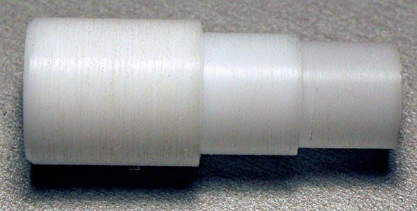 I turned this replacement bushing from Delrin. It fits tighter than the stock bushing, and the smallest diameter sleeve provides extra support for the lamp's shank.