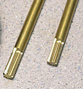 I needed to machine splines on ¼" brass shafts to mate with motors that could be controlled remotely. These are the finished splines.