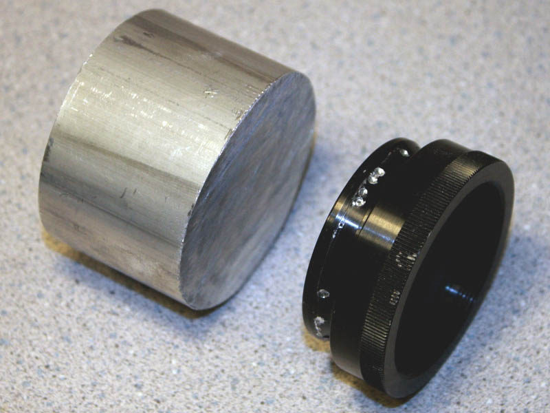 First I bored a 1.97" hole on the telescope side. Later this hole was threaded to mate with an "SCT" thread on the focuser extension tube.
