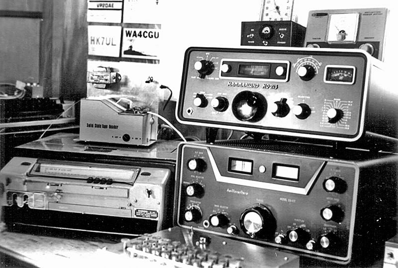 The following photo shows the shack around 1972. Two receivers are present – my original Hallicrafters SX-117 and a Hammarlund HQ-215. I have no idea why I needed a second receiver. Maybe I thought a solid-state receiver was cool.