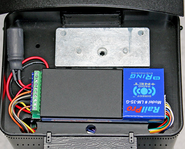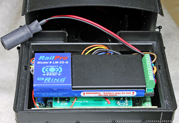This photo shows the RailPro loco module installed in the fuel bunker on the Shay. I documented this installation, and you can read that document here. Click to open the document in your PDF reader, where you can read it now. Or right-click, then click Save As to save the file directly to your hard drive.